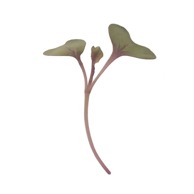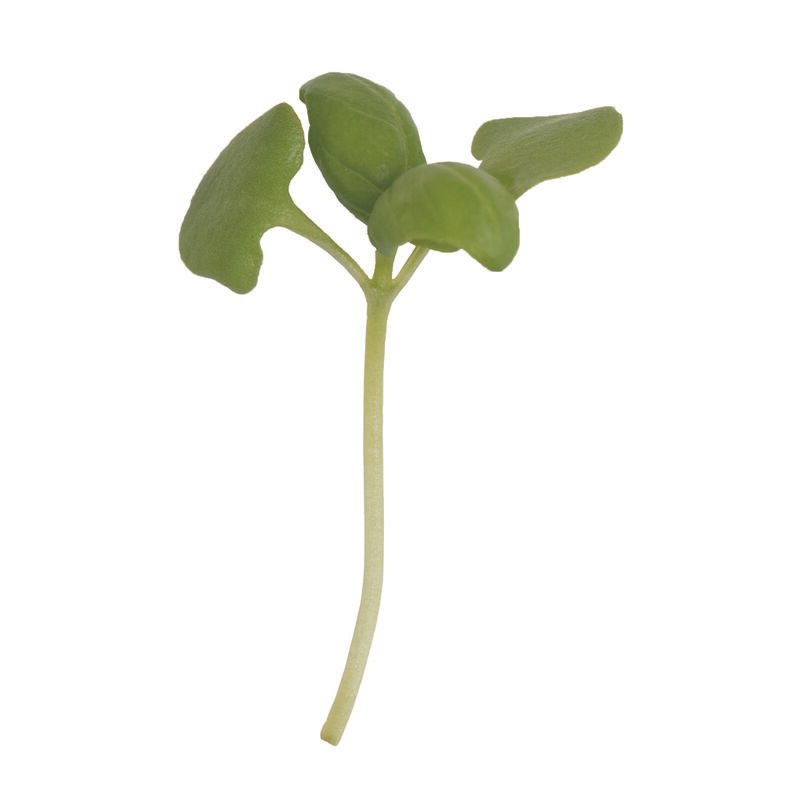Three lobed leaves, this microgreen is seriously flavorful, mild spice and sweetness with a beautiful visual profile.