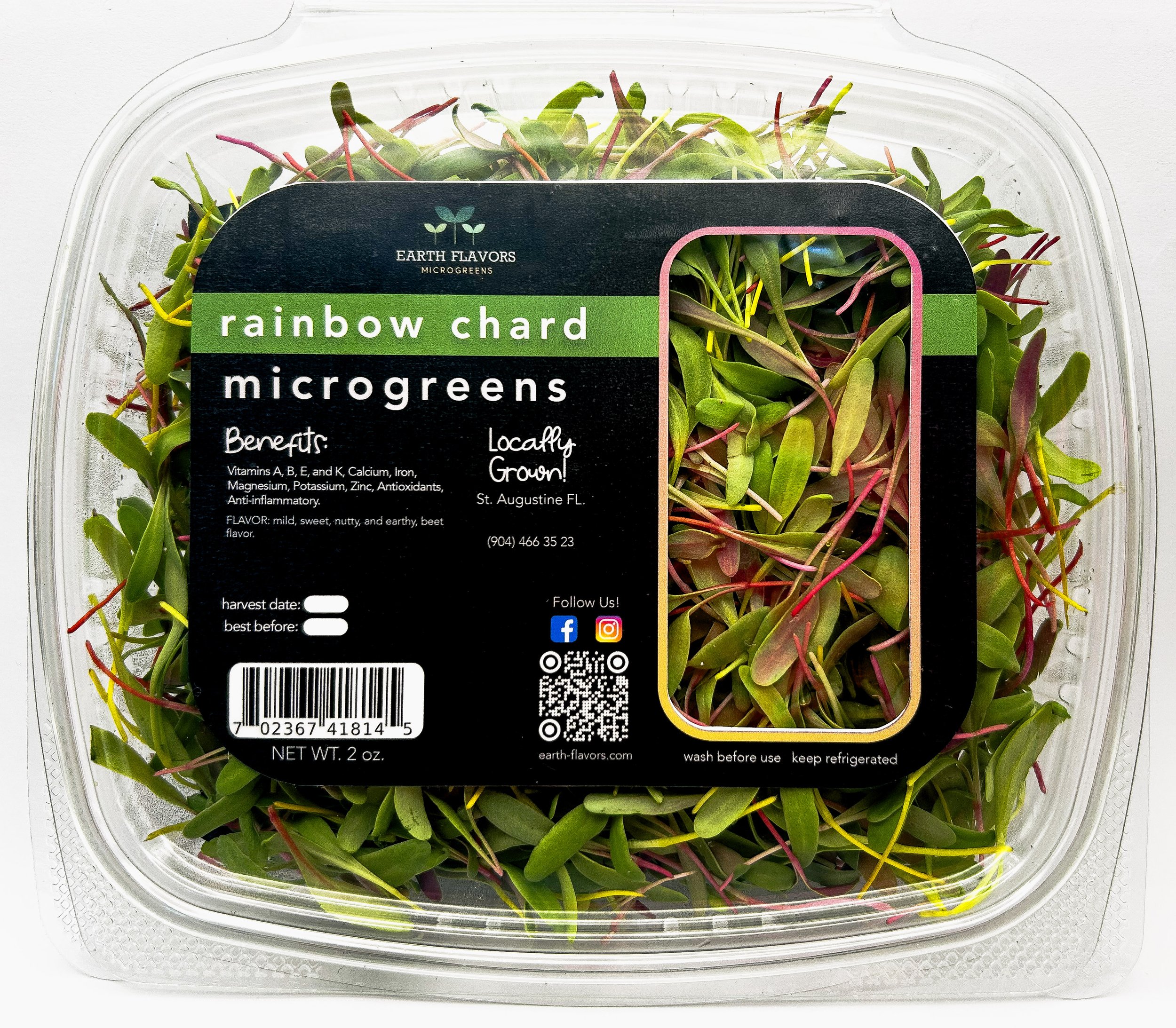 A colorful mosaic of swiss chard microgreens that bring brightness and crunch to any plate. Their tender stems and smooth leaves offer a mild earthy flavor with a crisp bite, perfect for adding structure and a natural pop of color to refined dishes.